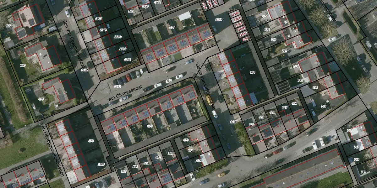 van Glymesstraat 1 is gelegen op kadastraal perceel TLN00N575. Deze kadastrale aanduiding is uniek en wordt gebruikt door het Kadaster om eigendomsrechten en andere zakelijke rechten vast te leggen. Het perceel maakt onderdeel uit van de kadastrale gemeente Tholen.