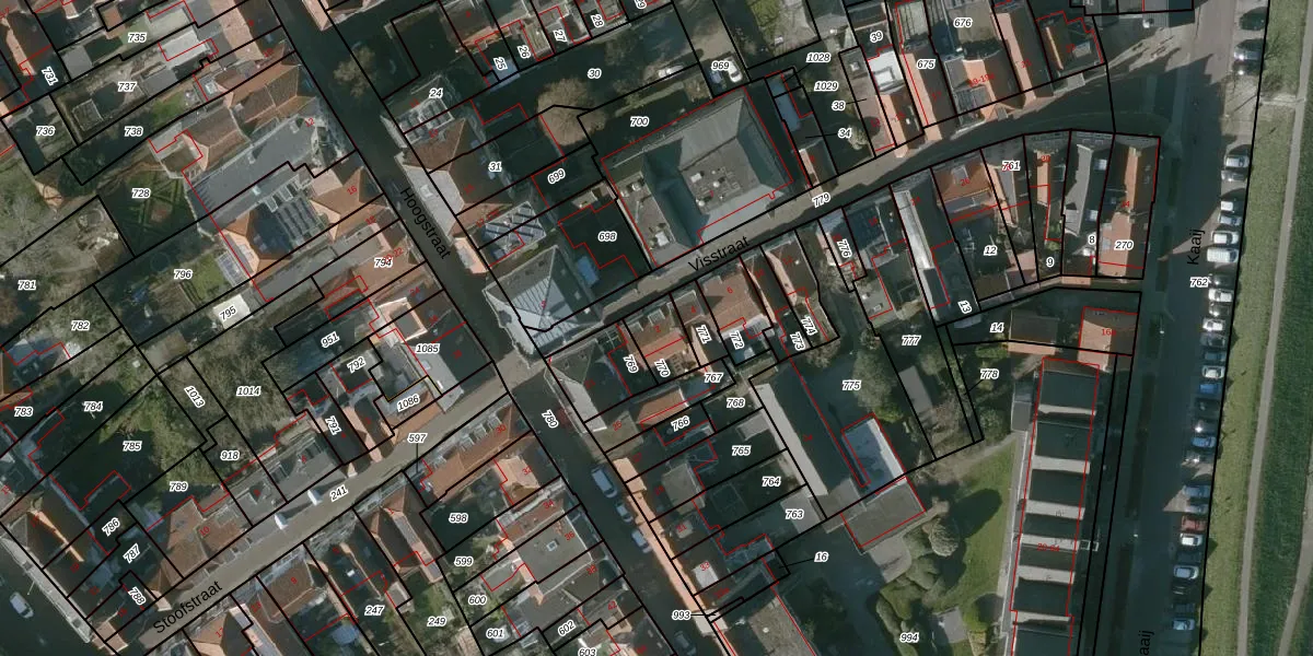 Visstraat 2 is gelegen op kadastraal perceel TLN00R770. Deze kadastrale aanduiding is uniek en wordt gebruikt door het Kadaster om eigendomsrechten en andere zakelijke rechten vast te leggen. Het perceel maakt onderdeel uit van de kadastrale gemeente Tholen.