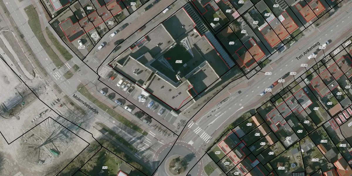 Het perceel waarop het adres ligt is TLN00-N-1621. De afkorting 'TLN00' staat voor kadastrale gemeente Tholen. Het perceel is kleiner dan gemiddeld in Tholen. Het perceel is 2292 m² groot, terwijl het gemiddelde ligt op 2,0 ha. Het kleinste perceel in de kadastrale gemeente is 0 m² groot. De grootste perceeloppervlakte is 32,13 km². Op het perceel zijn 43 adressen aanwezig. De laatste wijziging in het de Basisregistratie Kadaster (BRK) was op 21-12-2005.