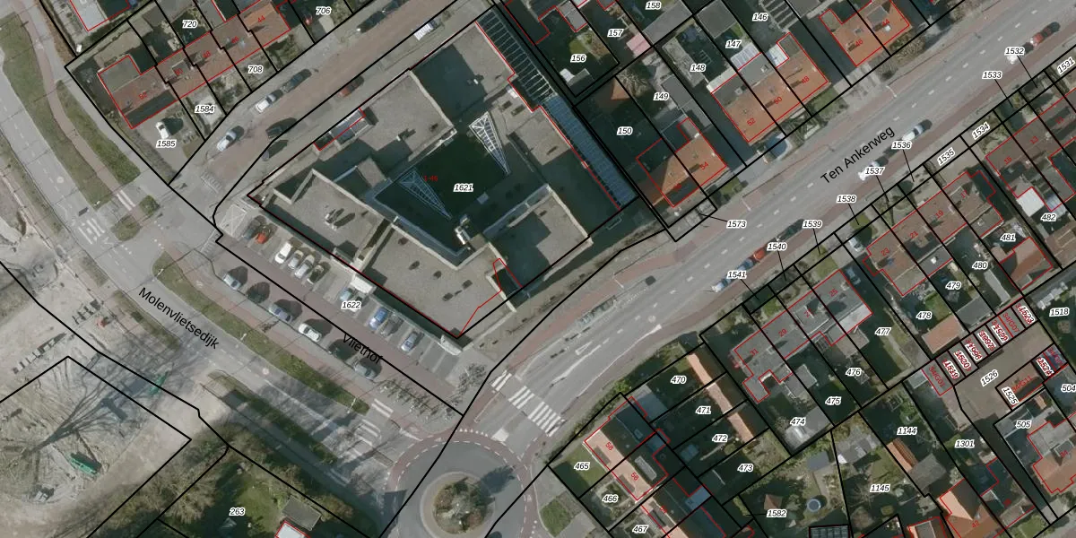 Het perceel waarop het adres ligt is TLN00-N-1621. De afkorting 'TLN00' staat voor kadastrale gemeente Tholen. Het perceel is kleiner dan gemiddeld in Tholen. Het perceel is 2292 m² groot, terwijl het gemiddelde ligt op 2,0 ha. Het kleinste perceel in de kadastrale gemeente is 0 m² groot. De grootste perceeloppervlakte is 32,13 km². Op het perceel zijn 43 adressen aanwezig. De huidige grenzen van het perceel zijn digitaal in de Basisregistratie Kadaster (BRK) geregistreerd op 21-12-2005.