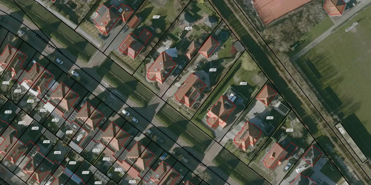 Het perceel waarop Windsingel 32 staat heeft een oppervlakte van 1019 m². Dit is een zeer groot perceel. De perceeloppervlakte wordt geregistreerd door het Kadaster. Gedetailleerde informatie over de maten van dit perceel kunt u vinden in het rapport Kadastrale kaart met maatvoering van Windsingel 32.