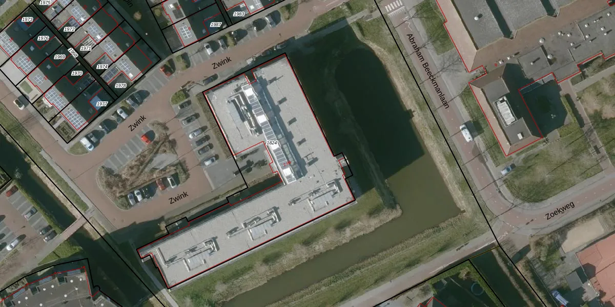 Het perceel waarop Zwink 38 staat heeft een oppervlakte van 2279 m². Dit is een zeer groot perceel. De perceeloppervlakte wordt geregistreerd door het Kadaster. Gedetailleerde informatie over de maten van dit perceel kunt u vinden in het rapport Kadastrale kaart met maatvoering van Zwink 38.