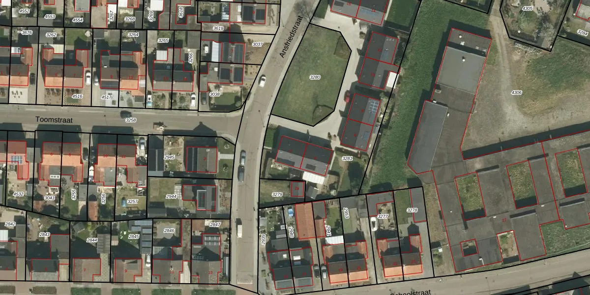Ansfriedstraat 2 is gelegen op kadastraal perceel THO00A3281. Deze kadastrale aanduiding is uniek en wordt gebruikt door het Kadaster om eigendomsrechten en andere zakelijke rechten vast te leggen. Het perceel maakt onderdeel uit van de kadastrale gemeente Thorn.