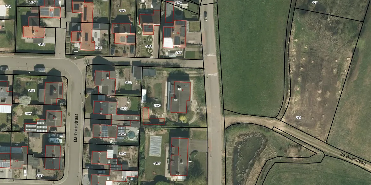 Baarstraat 9 is gelegen op kadastraal perceel THO00A3400. Deze kadastrale aanduiding is uniek en wordt gebruikt door het Kadaster om eigendomsrechten en andere zakelijke rechten vast te leggen. Het perceel maakt onderdeel uit van de kadastrale gemeente Thorn.