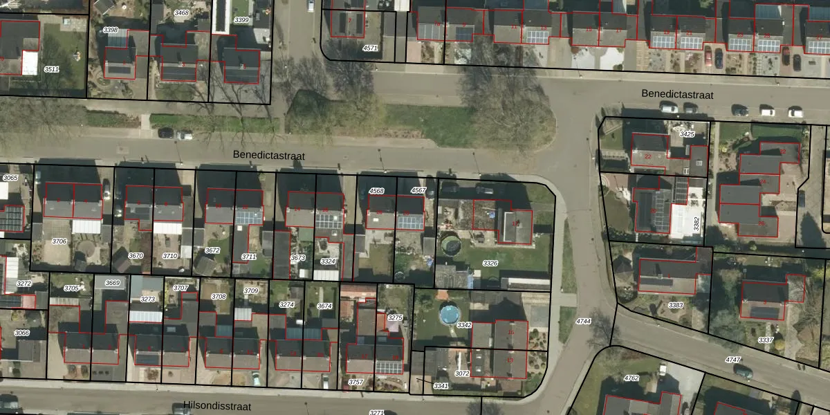 Benedictastraat 20 is gelegen op kadastraal perceel THO00A4567. Deze kadastrale aanduiding is uniek en wordt gebruikt door het Kadaster om eigendomsrechten en andere zakelijke rechten vast te leggen. Het perceel maakt onderdeel uit van de kadastrale gemeente Thorn.