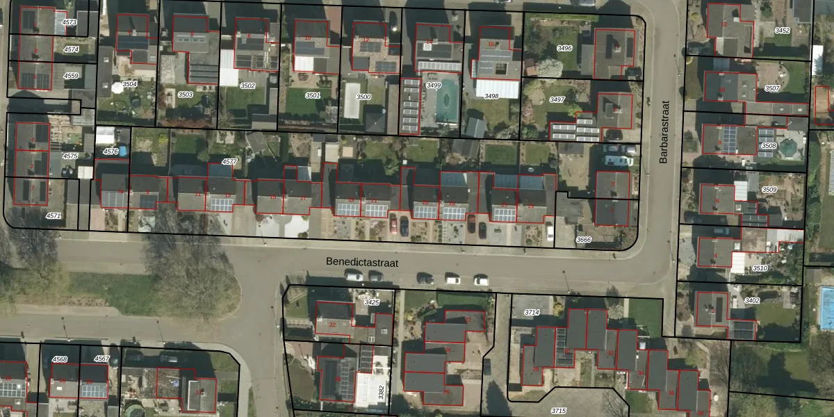 Benedictastraat 23 is gelegen op kadastraal perceel THO00A4577. Deze kadastrale aanduiding is uniek en wordt gebruikt door het Kadaster om eigendomsrechten en andere zakelijke rechten vast te leggen. Het perceel maakt onderdeel uit van de kadastrale gemeente Thorn.