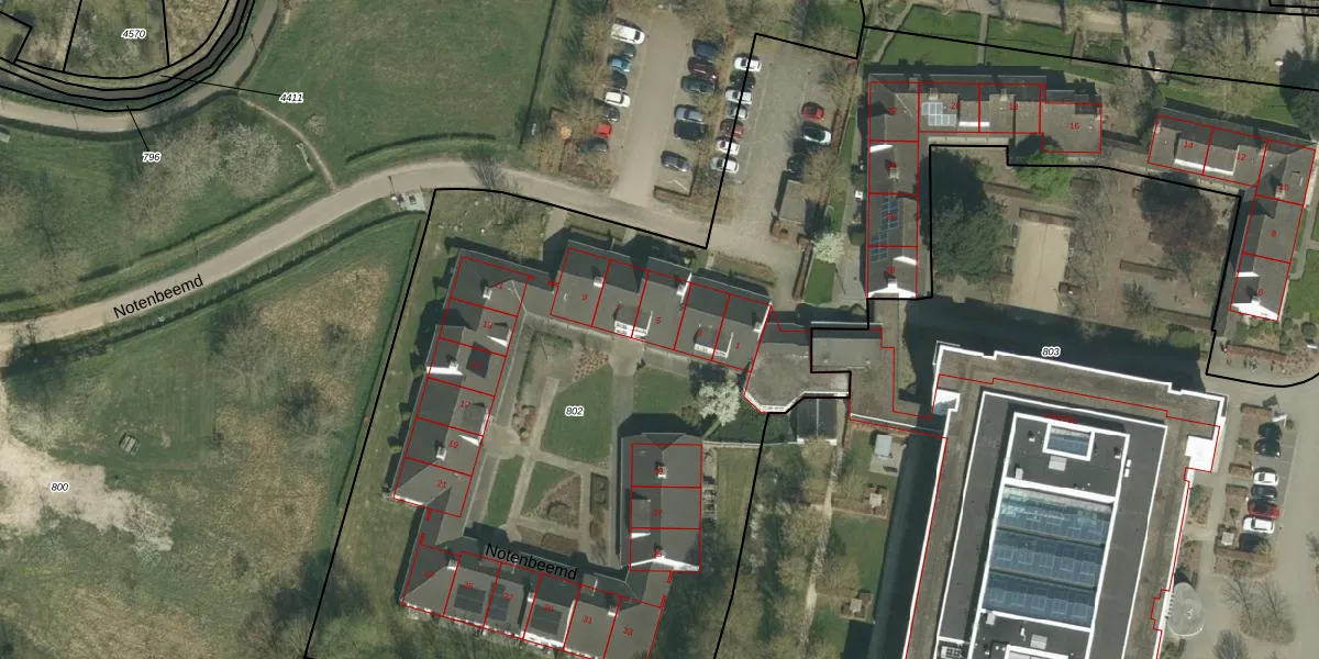 Notenbeemd 5 is gelegen op kadastraal perceel THO00C802. Deze kadastrale aanduiding is uniek en wordt gebruikt door het Kadaster om eigendomsrechten en andere zakelijke rechten vast te leggen. Het perceel maakt onderdeel uit van de kadastrale gemeente Thorn.