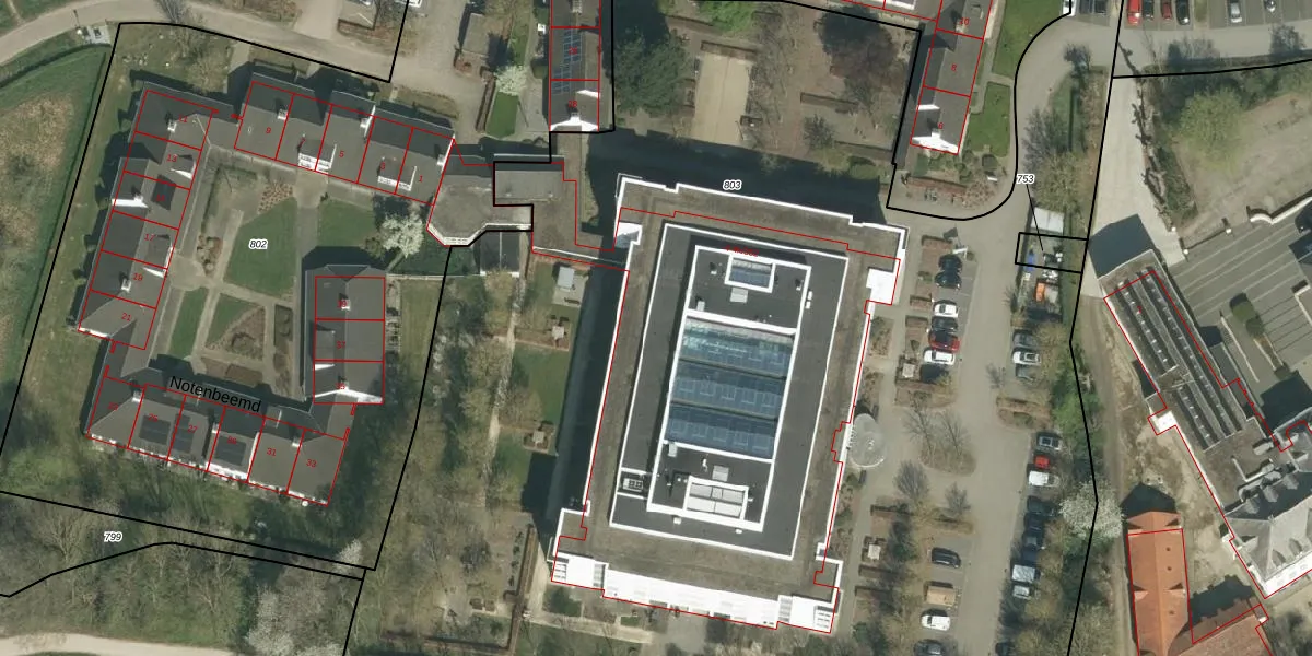 Het adres is gelegen op perceel 803 in de sectie C en de kadastrale gemeente Thorn. De kadastrale aanduiding is aldus THO00-C-803. De gemiddelde perceeloppervlakte in de kadastrale gemeente Thorn is 2992,4 m². Dit perceel is met zijn 9879 m² dus groter dan gemiddeld. Het kleinste perceel in de kadastrale gemeente is 1 m² groot. De grootste perceeloppervlakte is 32,3 ha. Op het perceel liggen in totaal 101 adressen. De huidige grenzen van het perceel zijn digitaal in de Basisregistratie Kadaster (BRK) geregistreerd op 05-10-2009.
