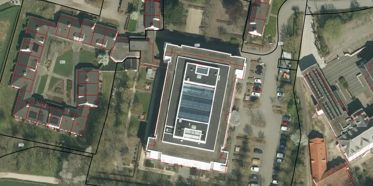 Het adres is gelegen op perceel 803 in de sectie C en de kadastrale gemeente Thorn. De kadastrale aanduiding is aldus THO00-C-803. De gemiddelde perceeloppervlakte in de kadastrale gemeente Thorn is 2992,4 m². Dit perceel is met zijn 9879 m² dus groter dan gemiddeld. De grootste perceeloppervlakte in de kadastrale gemeente is 32,3 ha. De kleinste oppervlakte bedraagt 1 m². Op het perceel liggen in totaal 101 adressen. De huidige grenzen van het perceel zijn digitaal in de Basisregistratie Kadaster (BRK) geregistreerd op 05-10-2009.