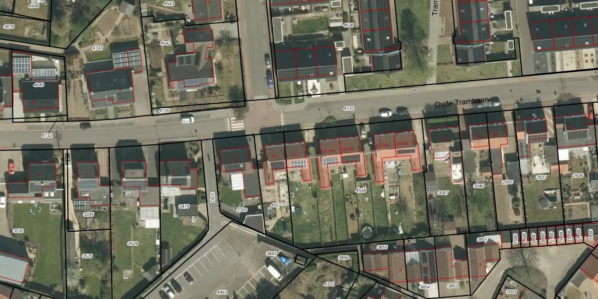 Oude Trambaan 12 is gelegen op kadastraal perceel THO00A4558. Deze kadastrale aanduiding is uniek en wordt gebruikt door het Kadaster om eigendomsrechten en andere zakelijke rechten vast te leggen. Het perceel maakt onderdeel uit van de kadastrale gemeente Thorn.