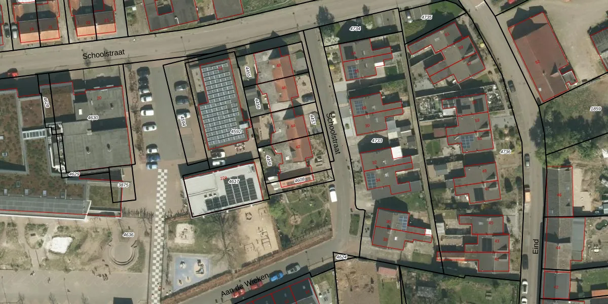 Schoolstraat 42 is gelegen op kadastraal perceel THO00A4458. Deze kadastrale aanduiding is uniek en wordt gebruikt door het Kadaster om eigendomsrechten en andere zakelijke rechten vast te leggen. Het perceel maakt onderdeel uit van de kadastrale gemeente Thorn.