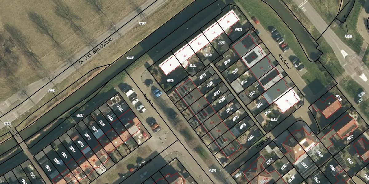 Gebruik de zoekbalk of klik op een perceel voor informatie over de adressen binnen dit perceel.