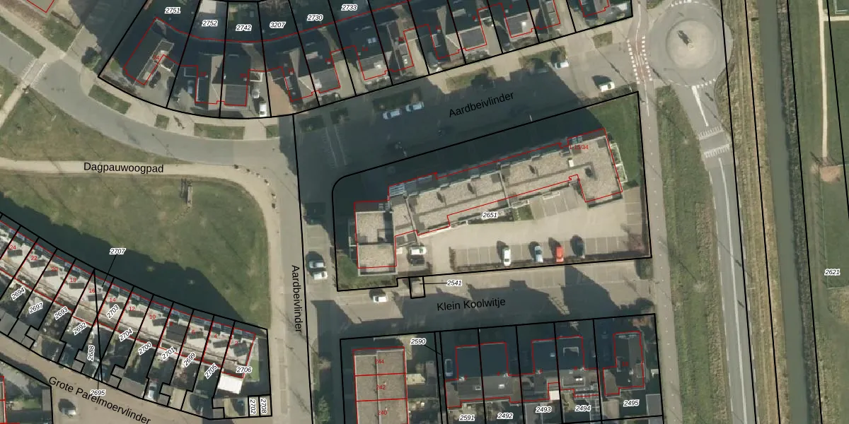 Aardbeivlinder 15-23 is gelegen op kadastraal perceel TIE00K2651. Deze kadastrale aanduiding is uniek en wordt gebruikt door het Kadaster om eigendomsrechten en andere zakelijke rechten vast te leggen. Het perceel maakt onderdeel uit van de kadastrale gemeente Tiel.