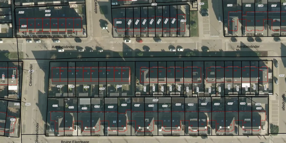 Aardbeivlinder 160 is gelegen op kadastraal perceel TIE00K2571. Deze kadastrale aanduiding is uniek en wordt gebruikt door het Kadaster om eigendomsrechten en andere zakelijke rechten vast te leggen. Het perceel maakt onderdeel uit van de kadastrale gemeente Tiel.