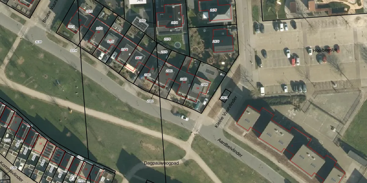 Aardbeivlinder 36 is gelegen op kadastraal perceel TIE00K2383. Deze kadastrale aanduiding is uniek en wordt gebruikt door het Kadaster om eigendomsrechten en andere zakelijke rechten vast te leggen. Het perceel maakt onderdeel uit van de kadastrale gemeente Tiel.