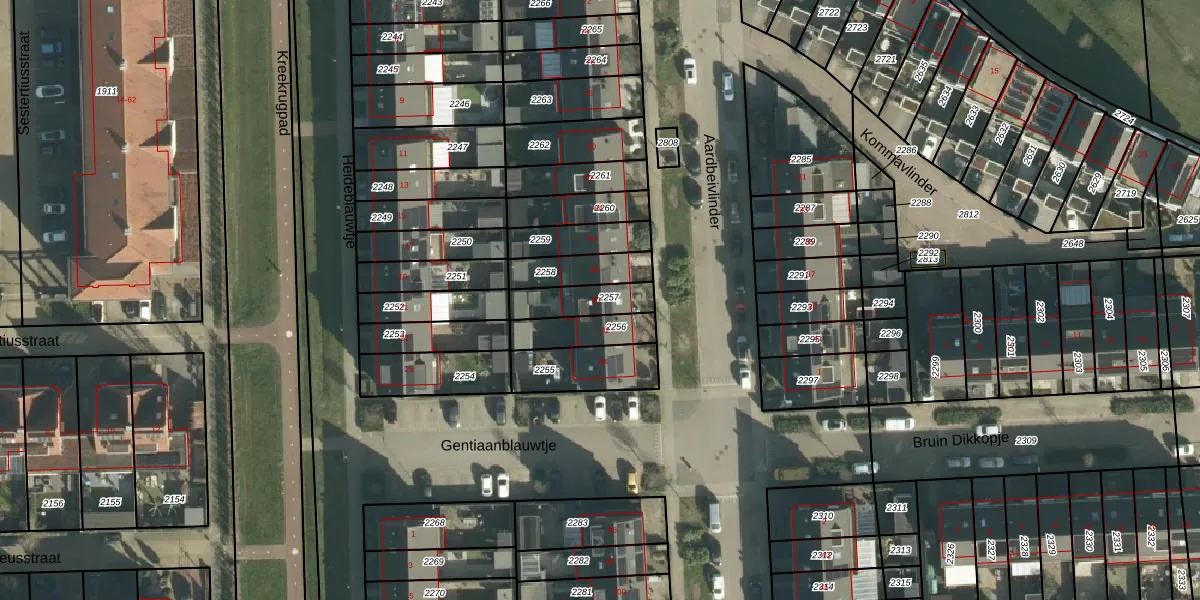 Aardbeivlinder 90 is gelegen op kadastraal perceel TIE00K2257. Deze kadastrale aanduiding is uniek en wordt gebruikt door het Kadaster om eigendomsrechten en andere zakelijke rechten vast te leggen. Het perceel maakt onderdeel uit van de kadastrale gemeente Tiel.