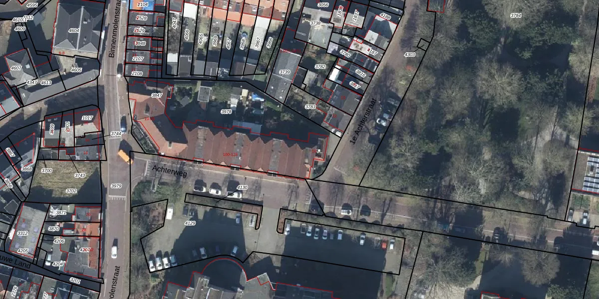 Achterweg 100 is gelegen op kadastraal perceel TIE00E3978. Deze kadastrale aanduiding is uniek en wordt gebruikt door het Kadaster om eigendomsrechten en andere zakelijke rechten vast te leggen. Het perceel maakt onderdeel uit van de kadastrale gemeente Tiel.