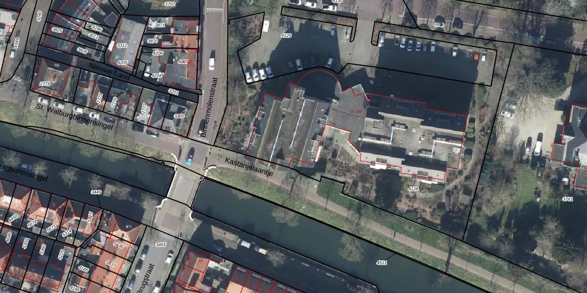 Het adres is gelegen op perceel 4128 in de sectie E en de kadastrale gemeente Tiel. De kadastrale aanduiding is aldus TIE00-E-4128. Het perceel is met 3971 m² relatief groot. Het gemiddelde ligt in de kadastrale gemeente Tiel op 1550,27 m². Het grootste perceel in de kadastrale gemeente is 26,3 ha. Het kleinste perceel heeft een oppervlakte van 0 m². Er zijn 63 adressen aanwezig op het perceel. In de Basisregistratie Kadaster (BRK) werden de grenzen van het perceel geregistreerd op 22-06-2010.