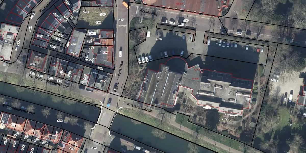 Het adres is gelegen op perceel 4128 in de sectie E en de kadastrale gemeente Tiel. De kadastrale aanduiding is aldus TIE00-E-4128. Het perceel is met 3971 m² relatief groot. Het gemiddelde ligt in de kadastrale gemeente Tiel op 1550,27 m². Het grootste perceel in de kadastrale gemeente is 26,3 ha. Het kleinste perceel heeft een oppervlakte van 0 m². Op het perceel liggen in totaal 63 adressen. De huidige grenzen van het perceel zijn digitaal in de Basisregistratie Kadaster (BRK) geregistreerd op 22-06-2010.