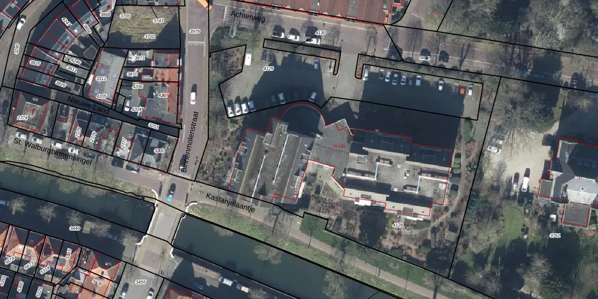 Het adres is gelegen op perceel 4128 in de sectie E en de kadastrale gemeente Tiel. De kadastrale aanduiding is aldus TIE00-E-4128. Het perceel is met 3971 m² relatief groot. Het gemiddelde ligt in de kadastrale gemeente Tiel op 1550,27 m². Het grootste perceel in de kadastrale gemeente is 26,3 ha. Het kleinste perceel heeft een oppervlakte van 0 m². Er zijn 63 adressen aanwezig op het perceel. De laatste wijziging in het de Basisregistratie Kadaster (BRK) was op 22-06-2010.