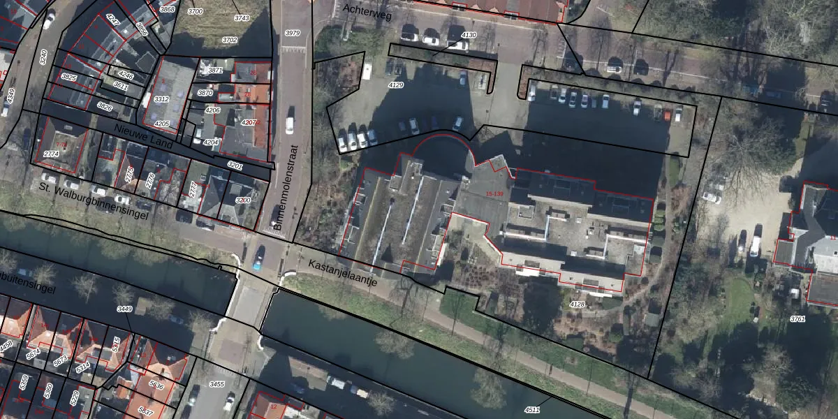 Het adres is gelegen op perceel 4128 in de sectie E en de kadastrale gemeente Tiel. De kadastrale aanduiding is aldus TIE00-E-4128. Het perceel is met 3971 m² relatief groot. Het gemiddelde ligt in de kadastrale gemeente Tiel op 1550,27 m². Het grootste perceel in de kadastrale gemeente is 26,3 ha. Het kleinste perceel heeft een oppervlakte van 0 m². Op het perceel zijn 63 adressen aanwezig. De huidige grenzen van het perceel zijn digitaal in de Basisregistratie Kadaster (BRK) geregistreerd op 22-06-2010.