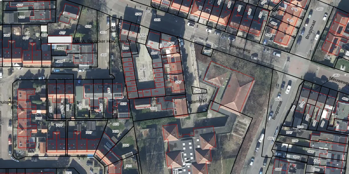 Adamshof 10 is gelegen op kadastraal perceel TIE00D5757. Deze kadastrale aanduiding is uniek en wordt gebruikt door het Kadaster om eigendomsrechten en andere zakelijke rechten vast te leggen. Het perceel maakt onderdeel uit van de kadastrale gemeente Tiel.