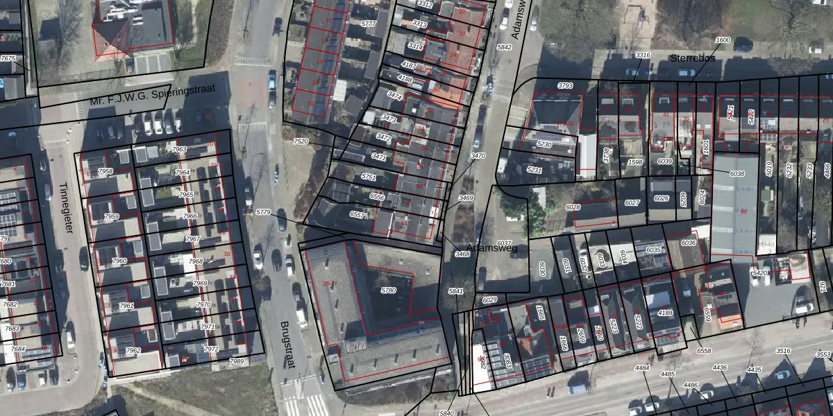 Gebruik de zoekbalk of klik op een perceel voor informatie over de adressen binnen dit perceel.