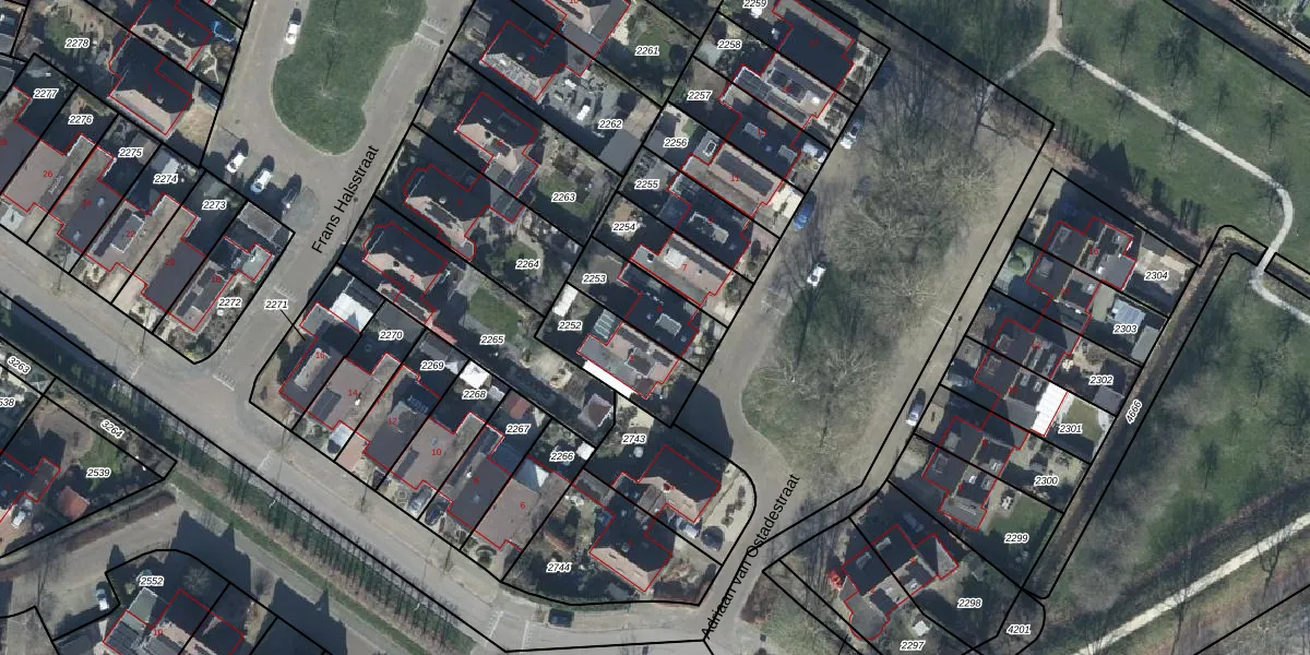 Adriaan van Ostadestraat 5 is gelegen op kadastraal perceel TIE00H2253. Deze kadastrale aanduiding is uniek en wordt gebruikt door het Kadaster om eigendomsrechten en andere zakelijke rechten vast te leggen. Het perceel maakt onderdeel uit van de kadastrale gemeente Tiel.