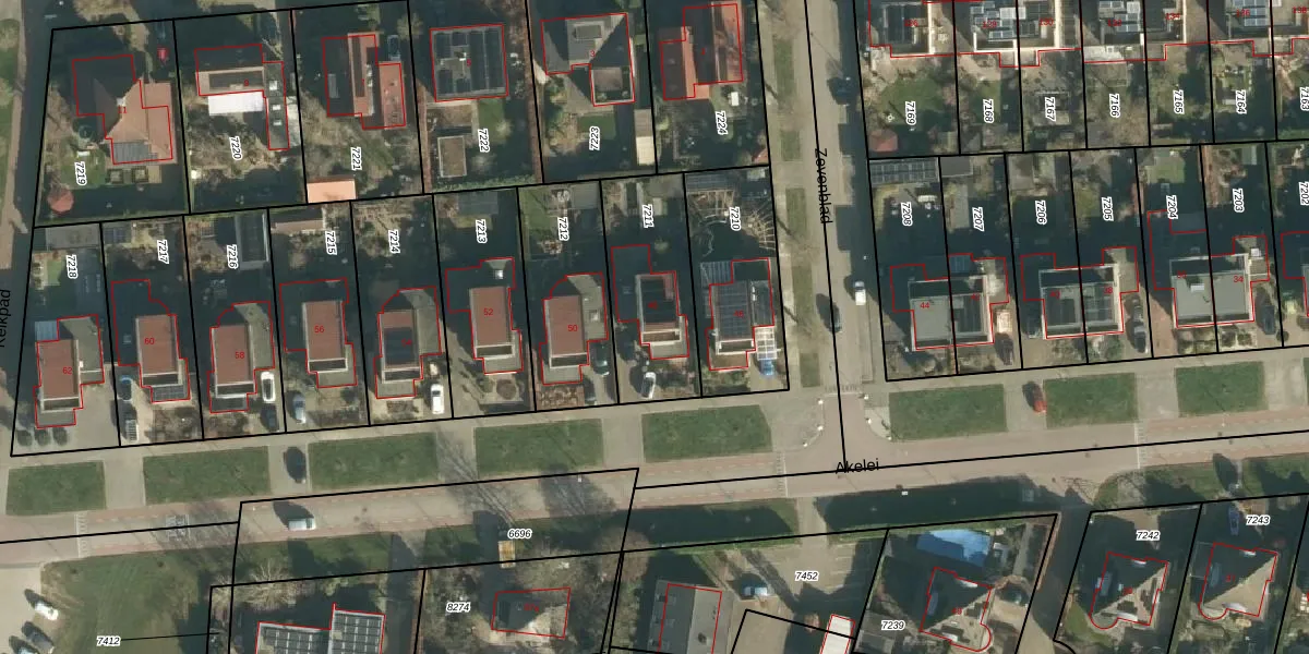 Het perceel waarop Akelei 48 staat heeft een oppervlakte van 441 m². Dit is een groot perceel. De perceeloppervlakte wordt geregistreerd door het Kadaster. Gedetailleerde informatie over de maten van dit perceel kunt u vinden in het rapport Kadastrale kaart met maatvoering van Akelei 48.