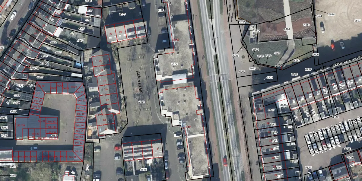 Akkerstraat 14 is gelegen op kadastraal perceel TIE00C6574. Deze kadastrale aanduiding is uniek en wordt gebruikt door het Kadaster om eigendomsrechten en andere zakelijke rechten vast te leggen. Het perceel maakt onderdeel uit van de kadastrale gemeente Tiel.