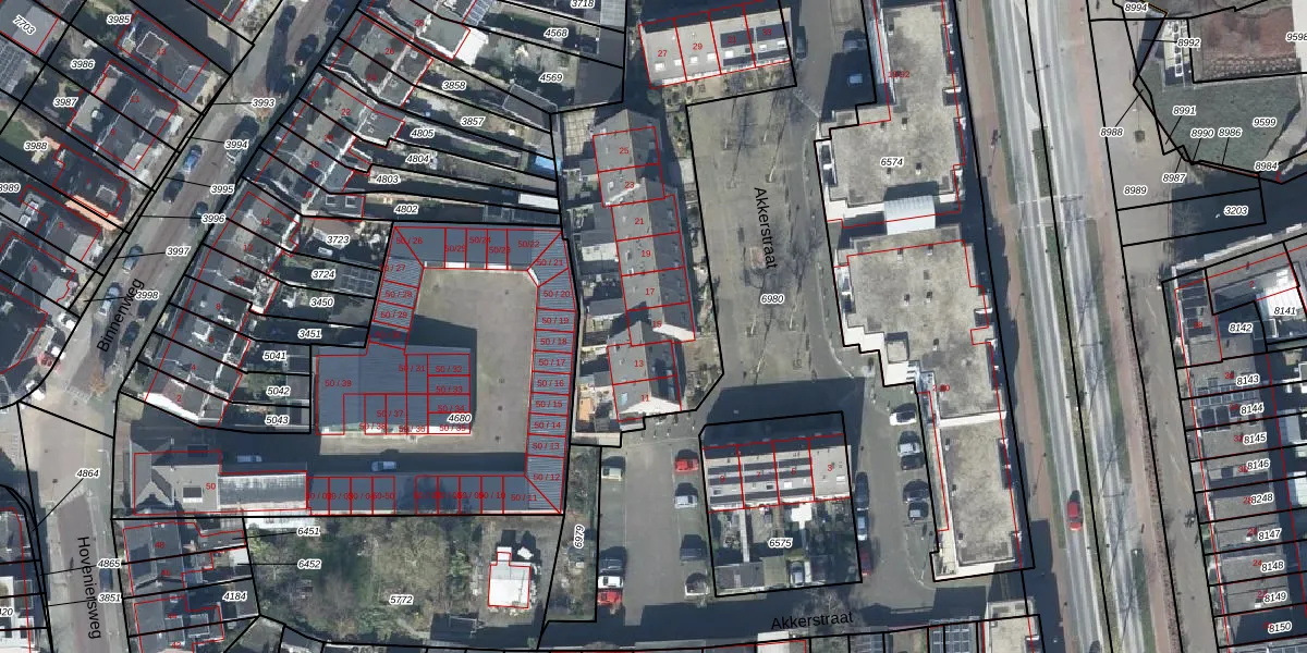 Het perceel waarop Akkerstraat 15 staat heeft een oppervlakte van 1585 m². Dit is een zeer groot perceel. De perceeloppervlakte wordt geregistreerd door het Kadaster. Gedetailleerde informatie over de maten van dit perceel kunt u vinden in het rapport Kadastrale kaart met maatvoering van Akkerstraat 15.