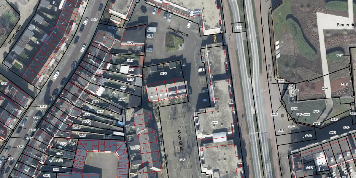 Het perceel waarop Akkerstraat 33 staat heeft een oppervlakte van 1585 m². Dit is een zeer groot perceel. De perceeloppervlakte wordt geregistreerd door het Kadaster. Gedetailleerde informatie over de maten van dit perceel kunt u vinden in het rapport Kadastrale kaart met maatvoering van Akkerstraat 33.