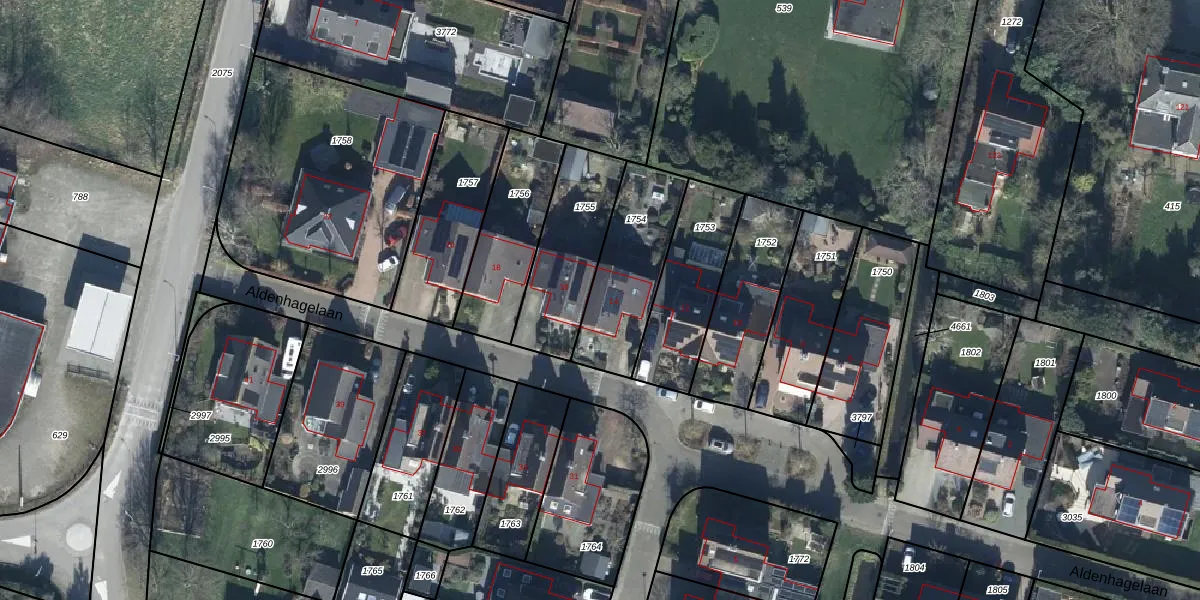Aldenhagelaan 14 is gelegen op kadastraal perceel TIE00H1754. Deze kadastrale aanduiding is uniek en wordt gebruikt door het Kadaster om eigendomsrechten en andere zakelijke rechten vast te leggen. Het perceel maakt onderdeel uit van de kadastrale gemeente Tiel.
