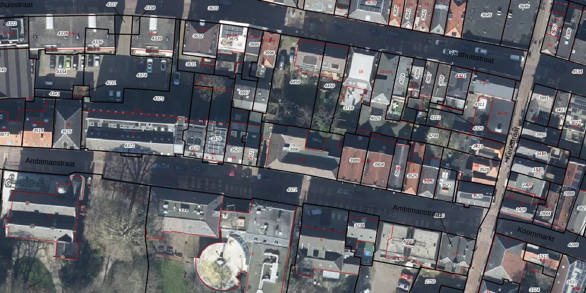 Het perceel waarop Ambtmanstraat 14-02 staat heeft een oppervlakte van 437 m². Dit is een groot perceel. De perceeloppervlakte wordt geregistreerd door het Kadaster. Gedetailleerde informatie over de maten van dit perceel kunt u vinden in het rapport Kadastrale kaart met maatvoering van Ambtmanstraat 14-02.