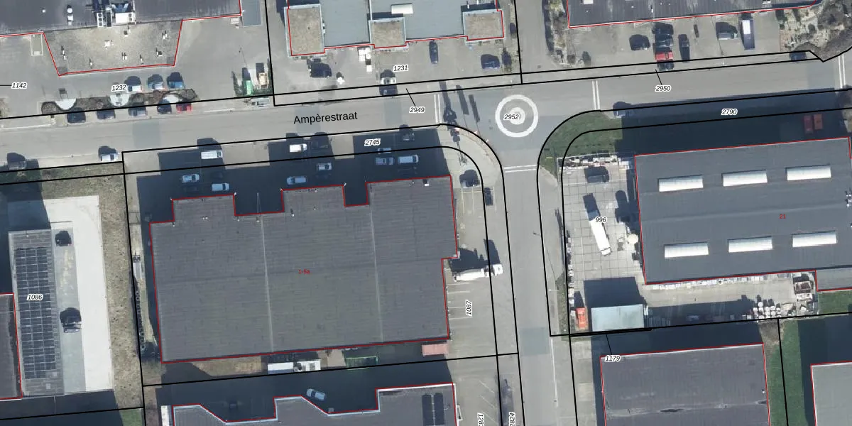 Het perceel waarop Ampèrestraat 1 staat heeft een oppervlakte van 4180 m². Dit is een zeer groot perceel. De perceeloppervlakte wordt geregistreerd door het Kadaster. Gedetailleerde informatie over de maten van dit perceel kunt u vinden in het rapport Kadastrale kaart met maatvoering van Ampèrestraat 1.