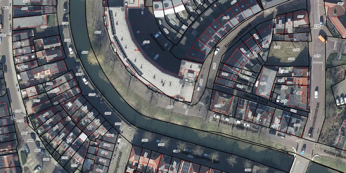 Andreashof 15 is gelegen op kadastraal perceel TIE00E4343. Deze kadastrale aanduiding is uniek en wordt gebruikt door het Kadaster om eigendomsrechten en andere zakelijke rechten vast te leggen. Het perceel maakt onderdeel uit van de kadastrale gemeente Tiel.
