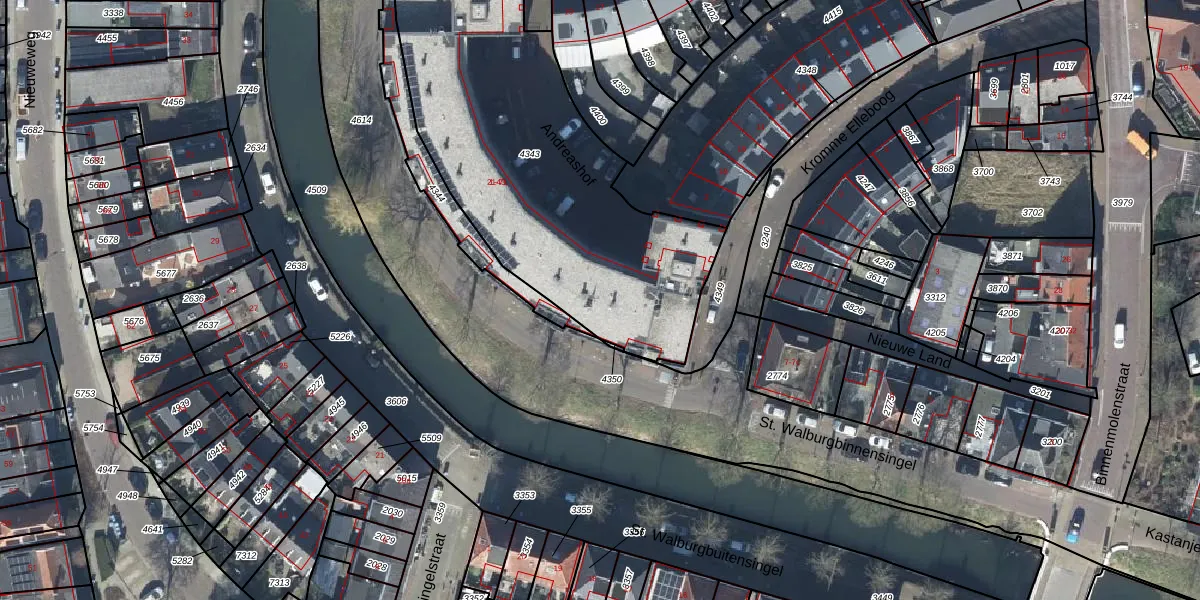 Andreashof 17 is gelegen op kadastraal perceel TIE00E4343. Deze kadastrale aanduiding is uniek en wordt gebruikt door het Kadaster om eigendomsrechten en andere zakelijke rechten vast te leggen. Het perceel maakt onderdeel uit van de kadastrale gemeente Tiel.