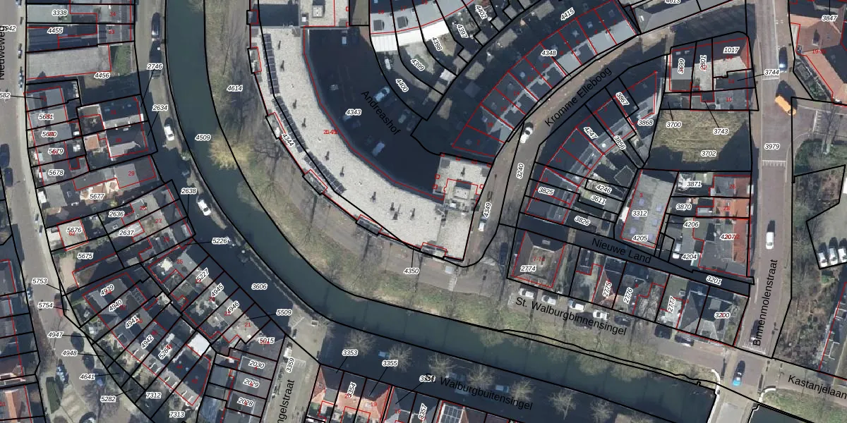 Andreashof 3 is gelegen op kadastraal perceel TIE00E4343. Deze kadastrale aanduiding is uniek en wordt gebruikt door het Kadaster om eigendomsrechten en andere zakelijke rechten vast te leggen. Het perceel maakt onderdeel uit van de kadastrale gemeente Tiel.