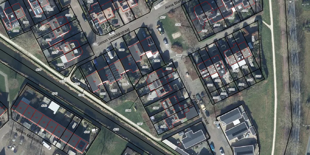 Anna Blamanstraat 18 is gelegen op kadastraal perceel TIE00H2383. Deze kadastrale aanduiding is uniek en wordt gebruikt door het Kadaster om eigendomsrechten en andere zakelijke rechten vast te leggen. Het perceel maakt onderdeel uit van de kadastrale gemeente Tiel.