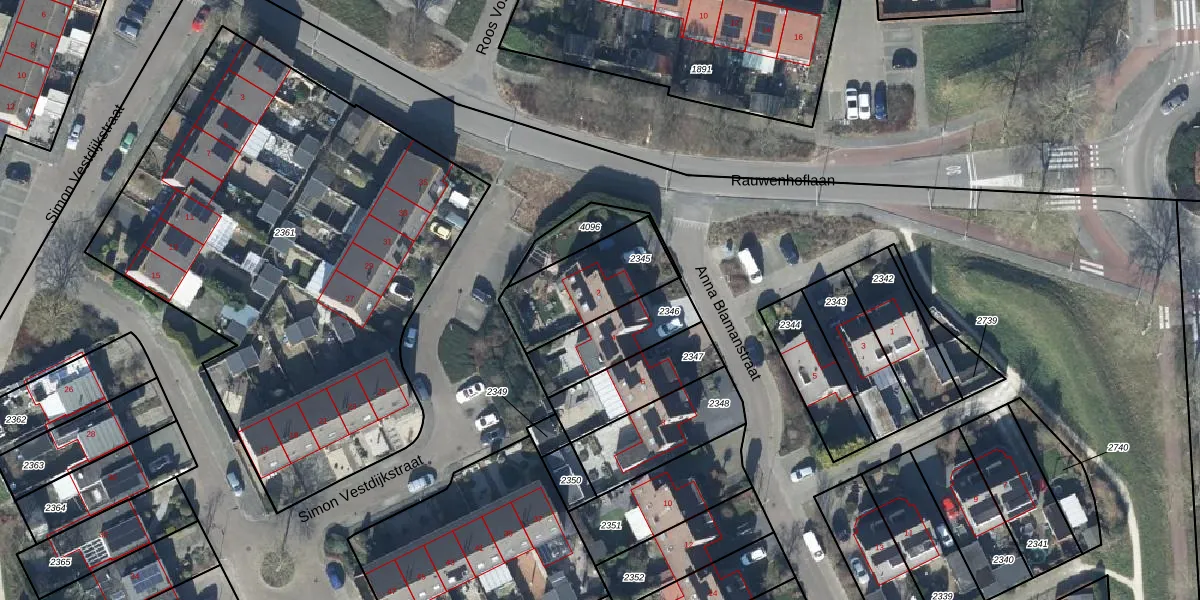 Het perceel waarop Anna Blamanstraat 2 staat heeft een oppervlakte van 326 m². Dit is een groot perceel. De perceeloppervlakte wordt geregistreerd door het Kadaster. Gedetailleerde informatie over de maten van dit perceel kunt u vinden in het rapport Kadastrale kaart met maatvoering van Anna Blamanstraat 2.