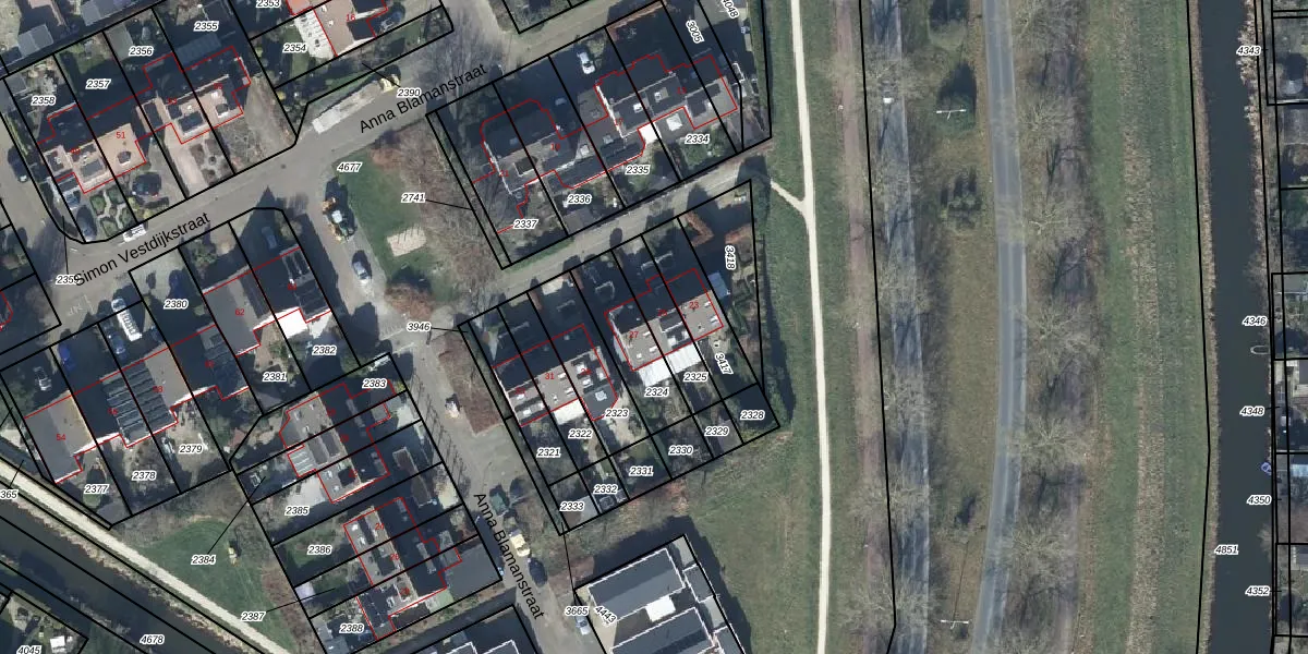 Anna Blamanstraat 25 is gelegen op kadastraal perceel TIE00H2325. Deze kadastrale aanduiding is uniek en wordt gebruikt door het Kadaster om eigendomsrechten en andere zakelijke rechten vast te leggen. Het perceel maakt onderdeel uit van de kadastrale gemeente Tiel.