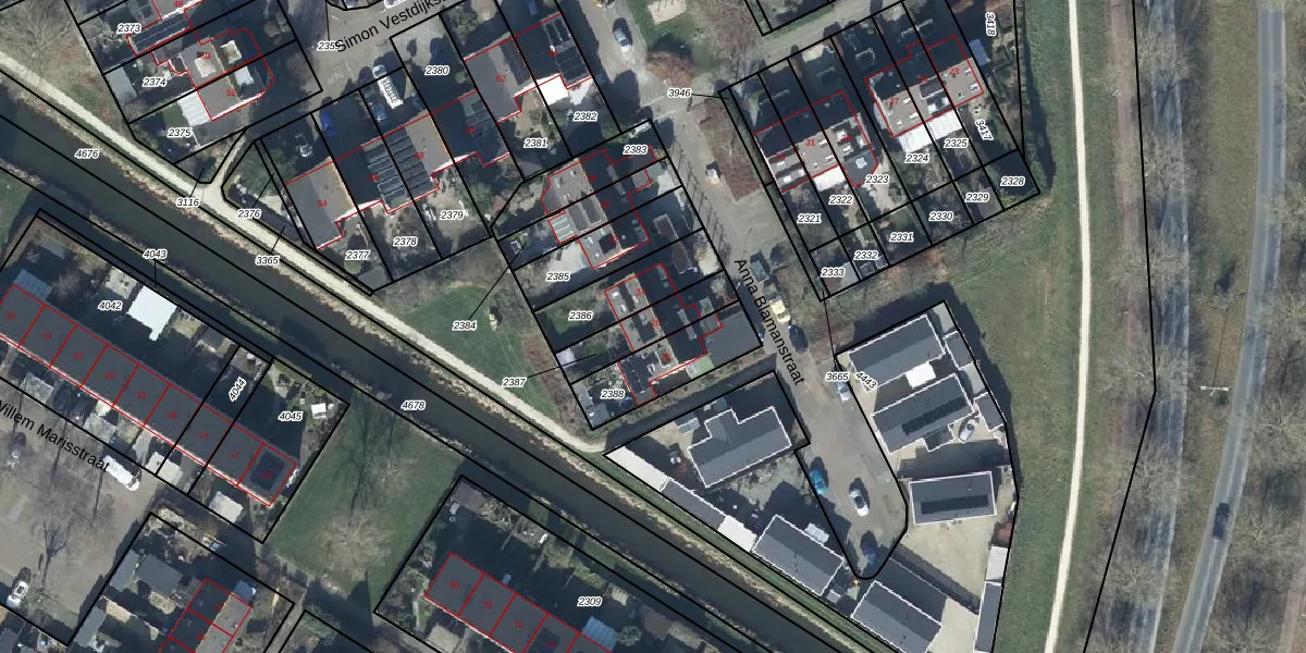 Anna Blamanstraat 26 is gelegen op kadastraal perceel TIE00H2387. Deze kadastrale aanduiding is uniek en wordt gebruikt door het Kadaster om eigendomsrechten en andere zakelijke rechten vast te leggen. Het perceel maakt onderdeel uit van de kadastrale gemeente Tiel.