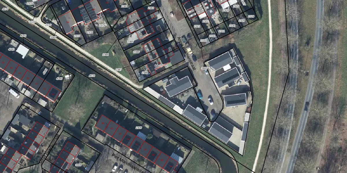 Het perceel waarop Anna Blamanstraat 30 staat heeft een oppervlakte van 1665 m². Dit is een zeer groot perceel. De perceeloppervlakte wordt geregistreerd door het Kadaster. Gedetailleerde informatie over de maten van dit perceel kunt u vinden in het rapport Kadastrale kaart met maatvoering van Anna Blamanstraat 30.