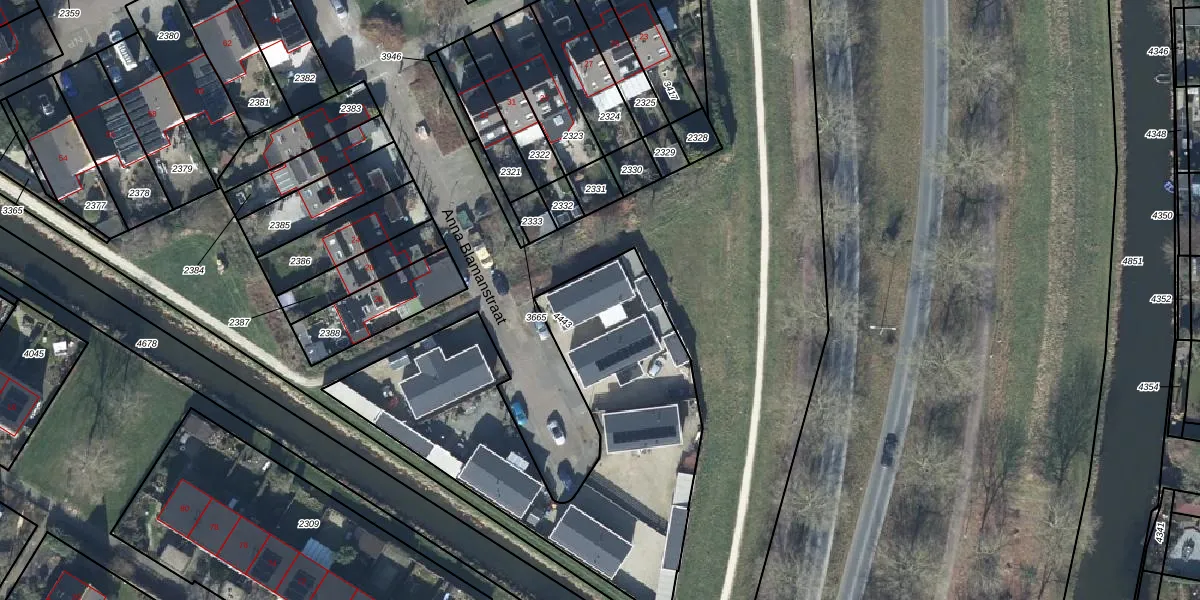 Het perceel waarop Anna Blamanstraat 42 staat heeft een oppervlakte van 1665 m². Dit is een zeer groot perceel. De perceeloppervlakte wordt geregistreerd door het Kadaster. Gedetailleerde informatie over de maten van dit perceel kunt u vinden in het rapport Kadastrale kaart met maatvoering van Anna Blamanstraat 42.