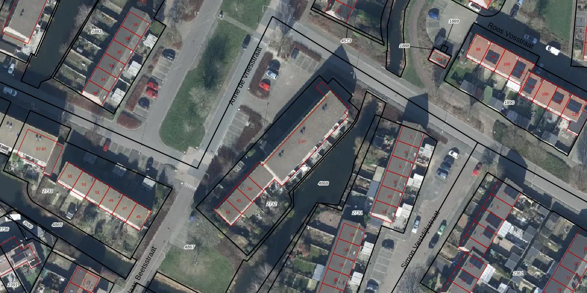 Het perceel waarop Anne de Vriesstraat 27 staat heeft een oppervlakte van 1340 m². Dit is een zeer groot perceel. De perceeloppervlakte wordt geregistreerd door het Kadaster. Gedetailleerde informatie over de maten van dit perceel kunt u vinden in het rapport Kadastrale kaart met maatvoering van Anne de Vriesstraat 27.