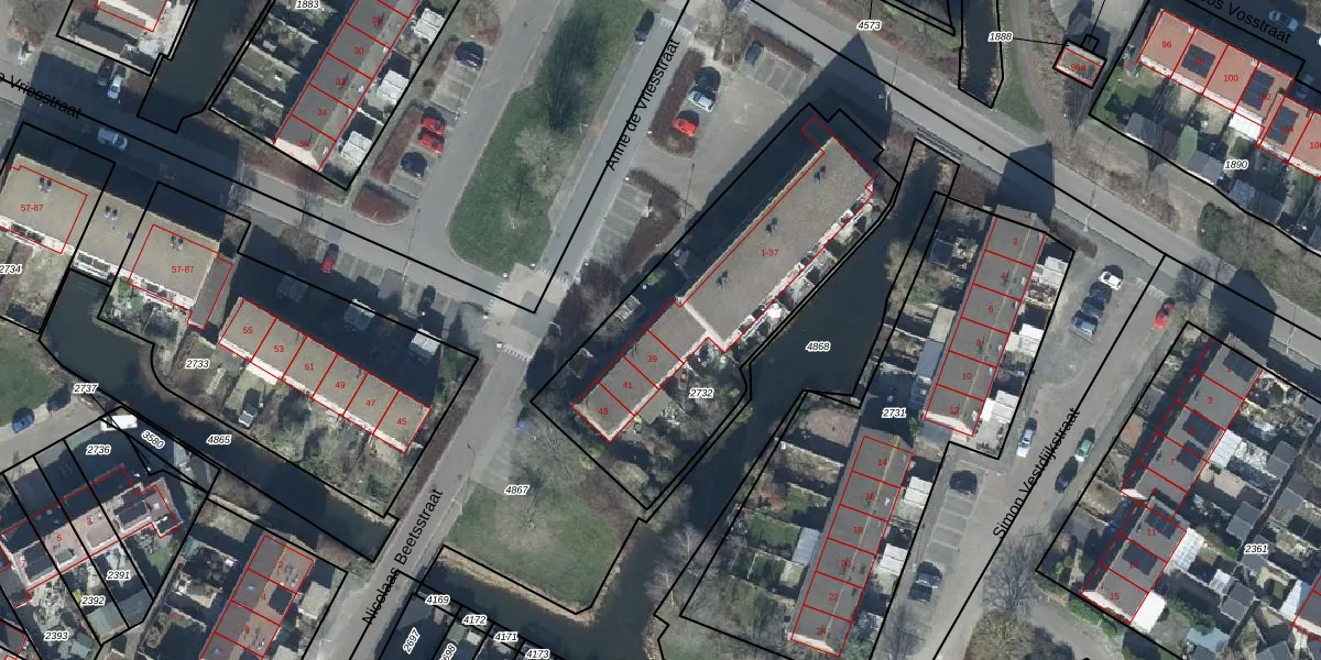 Anne de Vriesstraat 37 is gelegen op kadastraal perceel TIE00H2732. Deze kadastrale aanduiding is uniek en wordt gebruikt door het Kadaster om eigendomsrechten en andere zakelijke rechten vast te leggen. Het perceel maakt onderdeel uit van de kadastrale gemeente Tiel.