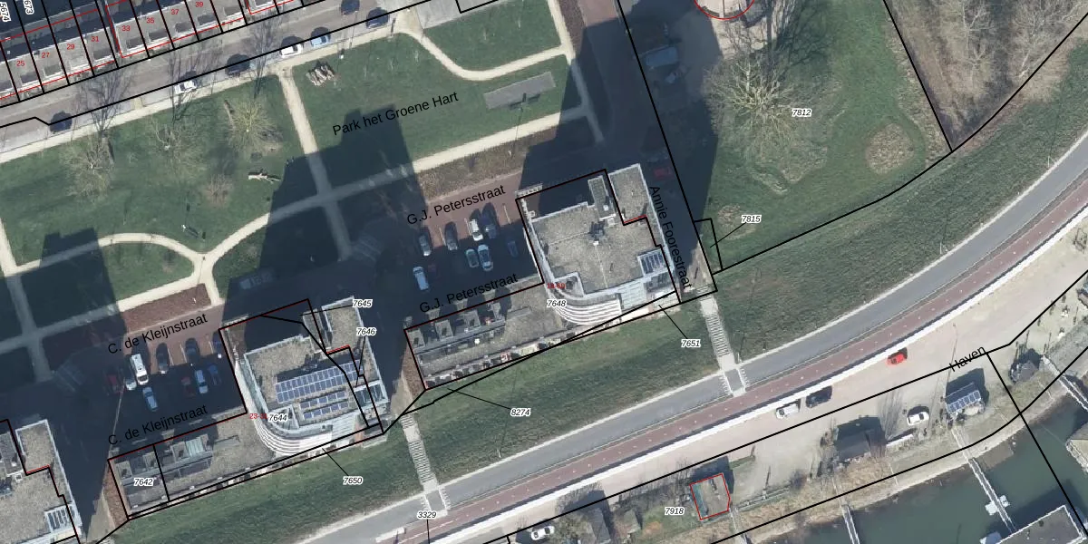 Het adres is gelegen op perceel 7648 in de sectie C en de kadastrale gemeente Tiel. De kadastrale aanduiding is aldus TIE00-C-7648. Het perceel is 851 m² groot. Dat is kleiner dan de gemiddelde perceeloppervlakte in Tiel, dat op 1546,7 m² ligt. Het grootste perceel in de kadastrale gemeente is 26,3 ha. Het kleinste perceel heeft een oppervlakte van 0 m². Op het perceel zijn 26 adressen aanwezig. In de Basisregistratie Kadaster (BRK) werden de grenzen van het perceel geregistreerd op 05-07-2012.