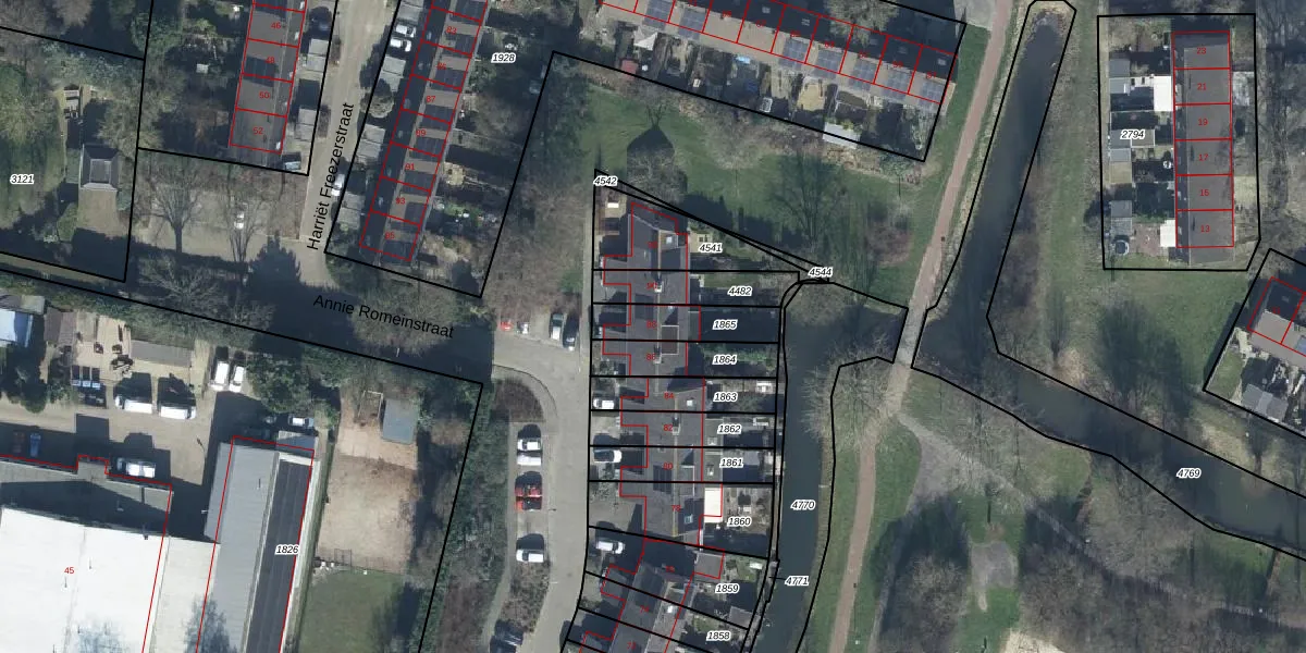 Annie Romeinstraat 88 is gelegen op kadastraal perceel TIE00H1865. Deze kadastrale aanduiding is uniek en wordt gebruikt door het Kadaster om eigendomsrechten en andere zakelijke rechten vast te leggen. Het perceel maakt onderdeel uit van de kadastrale gemeente Tiel.