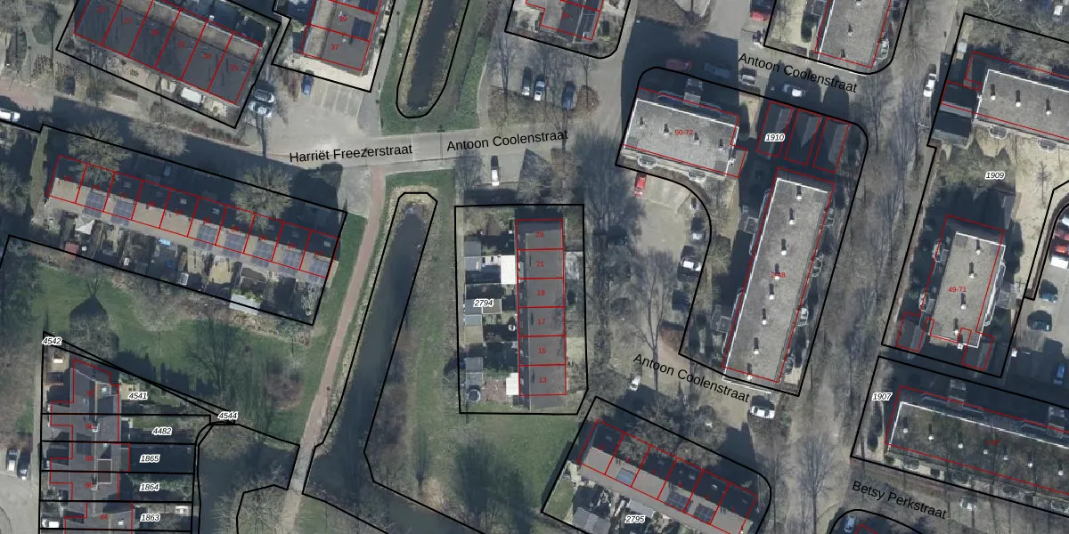 Het perceel waarop Antoon Coolenstraat 21 staat heeft een oppervlakte van 930 m². Dit is een groot perceel. De perceeloppervlakte wordt geregistreerd door het Kadaster. Gedetailleerde informatie over de maten van dit perceel kunt u vinden in het rapport Kadastrale kaart met maatvoering van Antoon Coolenstraat 21.