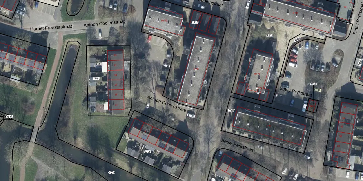 Antoon Coolenstraat 4 is gelegen op kadastraal perceel TIE00H1910. Deze kadastrale aanduiding is uniek en wordt gebruikt door het Kadaster om eigendomsrechten en andere zakelijke rechten vast te leggen. Het perceel maakt onderdeel uit van de kadastrale gemeente Tiel.